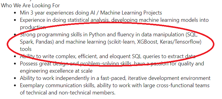 Above is a typical job advertisement for Data Scientist that you could find everywhere. Excluding the job experience and any other skills listed there, mainly what I circled were Technical Skills.